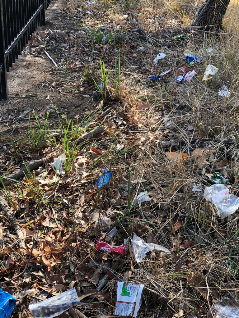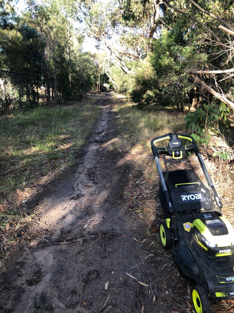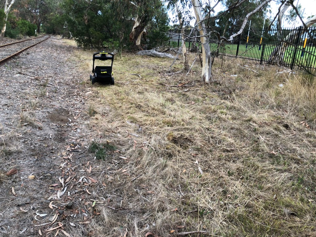 Today mowed about 100m of the reserve between Padua and the railway tracks from the beginning of the Padua fence. This area has good potential to encourage a diverse indigenous grassland ecosystem. Litter is a problem with hundreds of litter items coming through the fence from Padua.