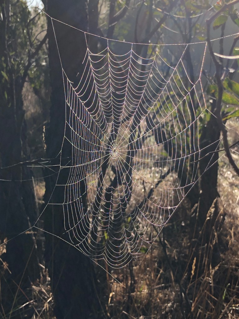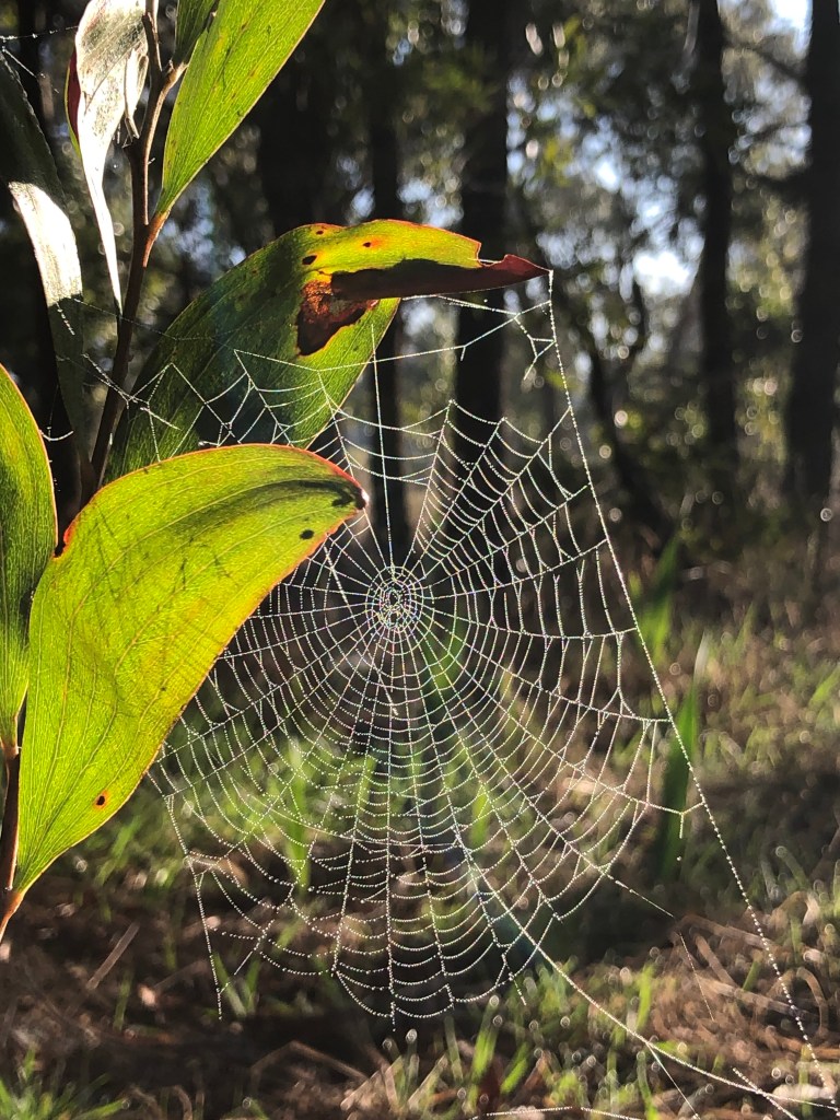 Slightly misty as we arrived and lots of water droplets on the spider webs. Beautiful. We worked along the reserve next to St Macartans PS. Removed all the Watsonias and smaller woody weeds that we could find in the section. A bit of a landmark as we have now removed all the Watsonias, Gorse, Burgan, Broom and Blackberry from Bungower Road entry gate for 500m on both sides of the tracks. A great achievement!!